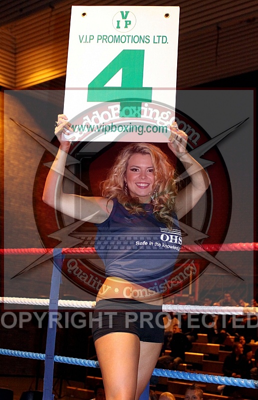 Ring Card Girls at the VIP Promotions in association with Wayne Carmichael Fightnight at the Huddersfield Sports Centre.