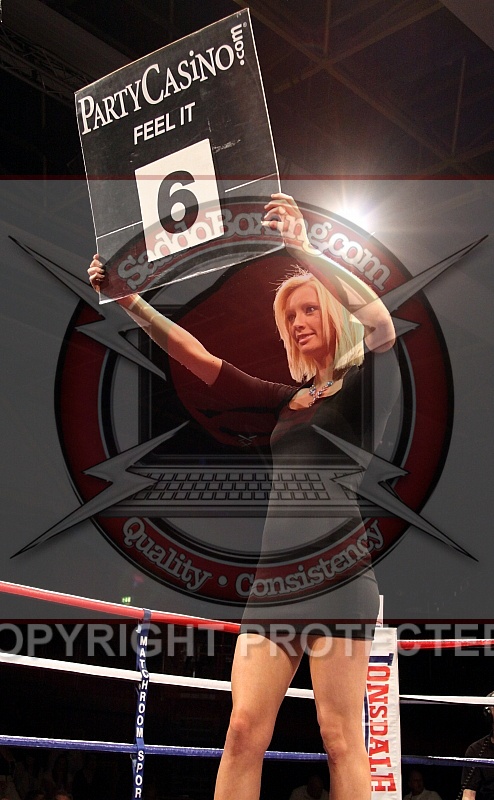 Ring-Card Girl at the MatchroomSport promoted Fightnight at Kingsway Leisure Centre, Widnes.