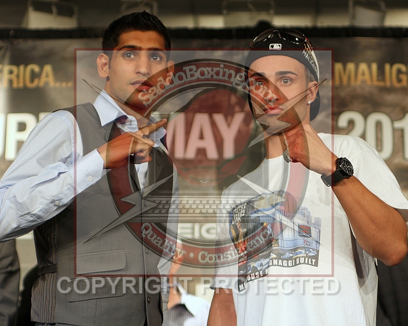 Description: May 12, 2010 New York, NY, USA WBA Super Lightweight Champion Amir Khan and Paulie Malignaggi pose at a press conference at the Theater Lobby of Madison Square Garden. They will meet in the ring on Saturday, May 15, 2010 at Madison Square Garden, New York, NY. Khan - Malignaggi Press Conference