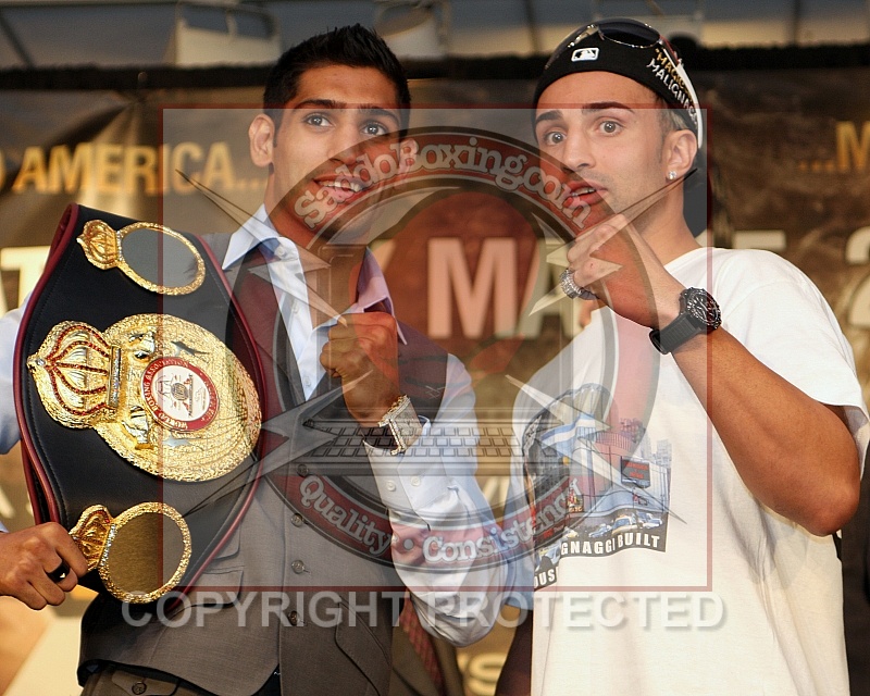 Description: May 12, 2010 New York, NY, USA WBA Super Lightweight Champion Amir Khan and Paulie Malignaggi pose at a press conference at the Theater Lobby of Madison Square Garden. They will meet in the ring on Saturday, May 15, 2010 at Madison Square Garden, New York, NY. Khan - Malignaggi Press Conference