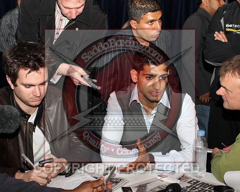 May 12, 2010 New York, NY, USA WBA Super Lightweight Champion Amir Khan speaks to the media at a press conference at the Theater Lobby of Madison Square Garden . Khan will defend his title against Paulie Malignaggi in the ring on Saturday, May 15, 2010 at Madison Square Garden, New York, NY. Khan - Malignaggi Press Conference