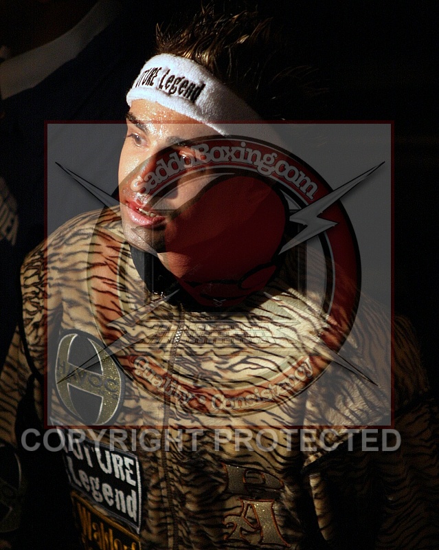 May 15, 2010 New York, NY Paulie Malignaggi Leopard trunks prepares to face WBA Jr Welterweight Champion Amir Khan BlackGold trunks in the main event at the Theater at Madison Square Garden, New York, NY.