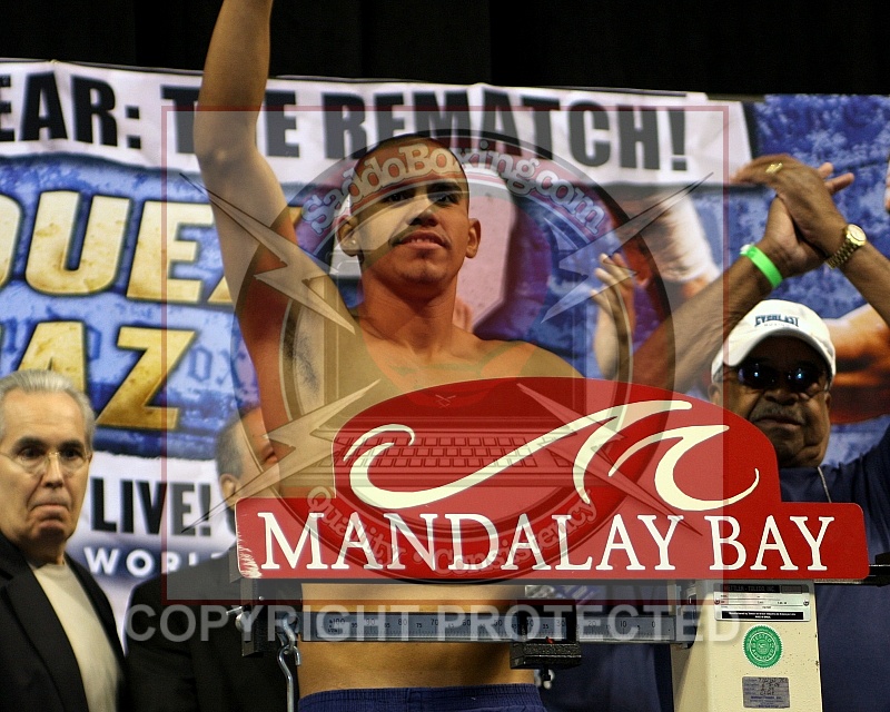 July 30, 2010 Las Vegas, NV Juan Diaz on the scale at the official weigh-in for Fight of the Year The Rematch where he will face Juan Manuel Marquez at the Mandalay Bay Events Center In Las Vegas, NV on July 31, 2010.