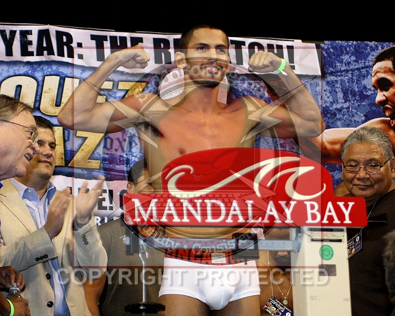 Description: July 30, 2010 Las Vegas, NV Jorge Linares on the scale at the official weigh-in for Fight of the Year The Rematch where he will face Rocky Juarez on the undercard which will take place at the Mandalay Bay Events Center In Las Vegas, NV on July 31, 2010.
