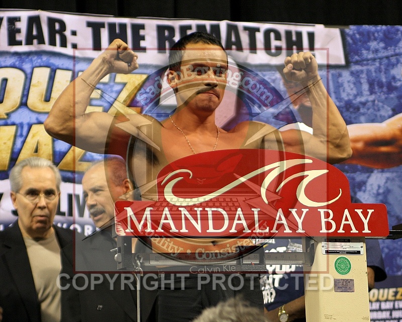 July 30, 2010 Las Vegas, NV Juan Manuel Marquez on the scale at the official weigh-in for Fight of the Year The Rematch where he will face Juan Diaz at the Mandalay Bay Events Center In Las Vegas, NV on July 31, 2010.